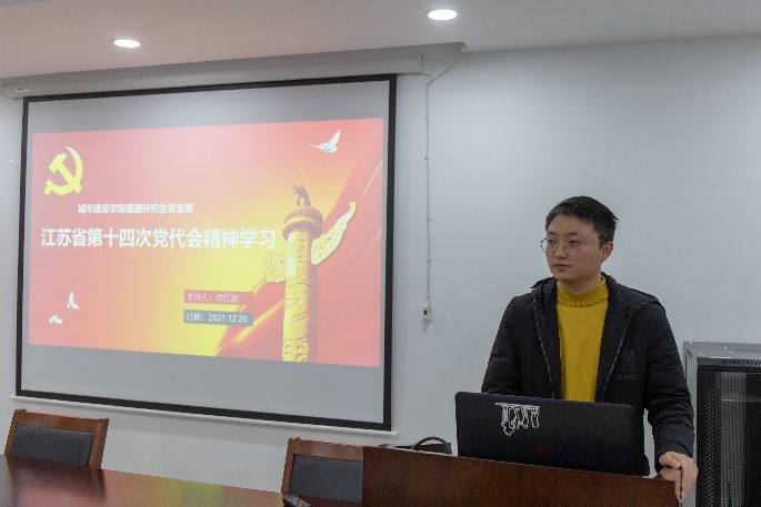 会议中,由龚红超同志带领支部全体党员一起学习,通过“学习强国”平台的专题视频和文章等,学习了江苏省第十四次党代会的会议精神。中国共产党江苏省第十四次代表大会指出,要更加紧密地团结在以习近平同志为核心的党中央周围,全面贯彻习近平新时代中国特色社会主义思想,沿着总书记指引的方向奋勇前进,坚决扛起“争当表率、争做示范、走在前列”光荣使命,奋力谱写“强富美高”新江苏现代化建设新篇章。大会上省委书记吴政隆强调,本次大会召开于“两个百年”奋斗目标交汇的重要历史节点。大会最激昂的旋律、代表最强烈的共鸣,就是为我们党的百年奋斗伟大成就而激动和骄傲,为我们党有坚强的领导核心和科学的思想指引而庆幸和自豪,为江苏发展取得的巨大成绩而欢欣和鼓舞,为江苏现代化建设的美好前景而振奋和向往