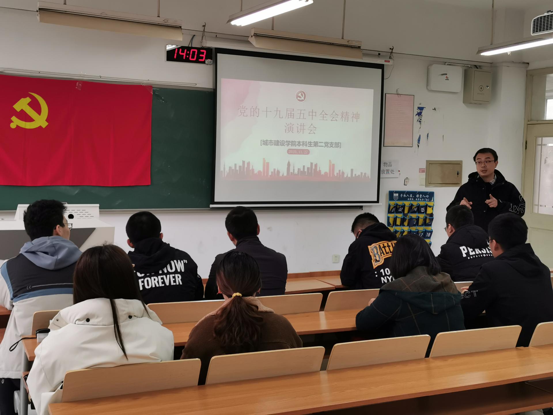 城建公司给排水专业本科生党支部于11月27日下午开展主题为“ 学十九届五中全会精神,立远大理想”的演讲活动,本次活动旨在让老员工把思想和行动统一到五中全会精神,在全面建设社会主义现代化国家新征程中贡献自己力量。本次活动全体支部党员参加。