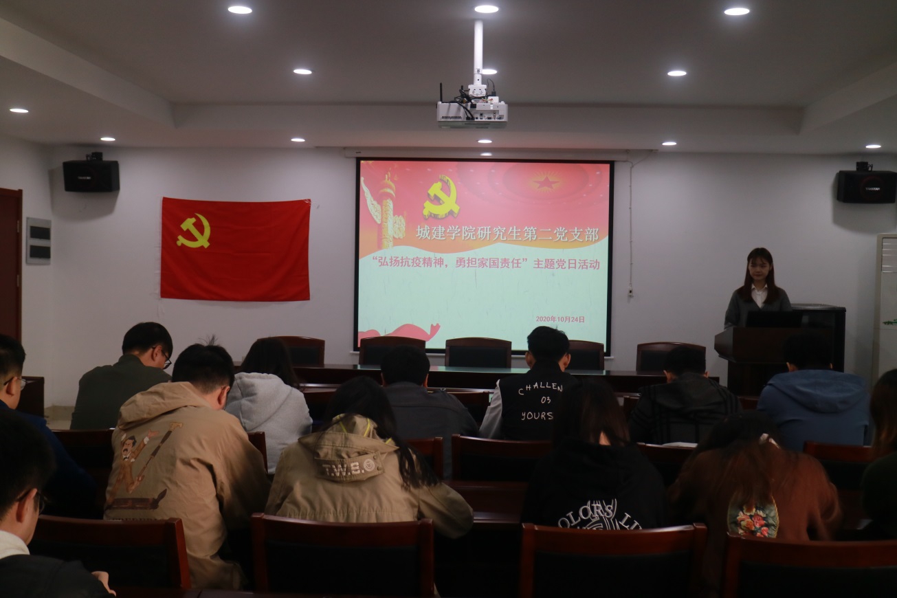 为进一步学习和弘扬伟大抗疫精神,号召青年党员充分发挥先锋模范作用,勇担家国责任。太阳成集团tyc234cc研究生第二党支部于10月24日举办了“弘扬抗疫精神,勇担家国责任”主题党日活动。
