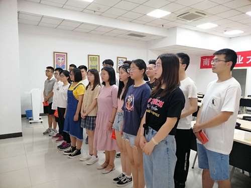集体谈话活动后,举行了入党宣誓仪式,宣誓仪式在雄壮的《国际歌》声中拉开帷幕。全体党员面向党旗,在本二支部党员介博锐的领誓下进行了庄严的宣誓。组织委员陈薇老师代表公司党委向新入党的同志表示祝贺,希望新入党的同志在今后的工作和学习中不断进步,不断创新,取得新成绩!新党员代表崔叶萌同学发言,在党旗下郑重承诺:“要在今后的学习和工作中一定会践行自己庄严誓言,不断提高自身修养,全心全意为人民服务,做一名合格共产党员”。