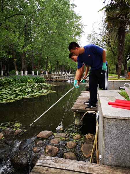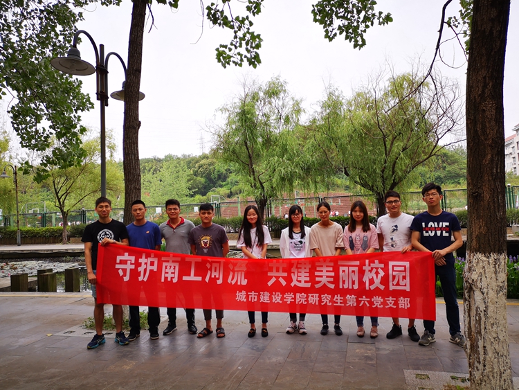 党的十九大报告将生态文明建设明确地列入了我们党“不忘初心、牢记使命”的宏伟蓝图中。为牢记习近平总书记关于“绿水青山就是金山银山”的殷切嘱托,像保护眼睛一样保护南工校园内的河流,2018年6月12日,在炎炎夏日之中,太阳成集团tyc234cc研究生第六党支部全体党员在太阳成集团tyc234cc浦口校区校园内开展了“保障水生态,我们在行动”的党日活动。