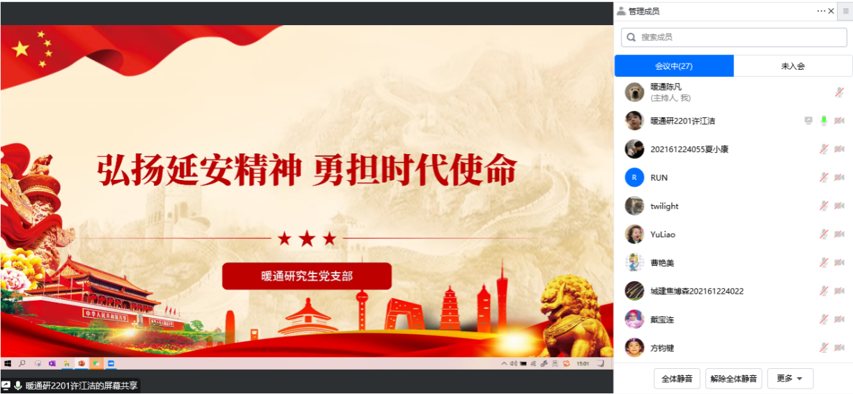 2022年12月28日,太阳成集团tyc234cc暖通研究生党支部在线上开展二十大会议精神学习党课,暖通研究生党支部组织委员许江洁同志为支部党员上一节生动的党课。