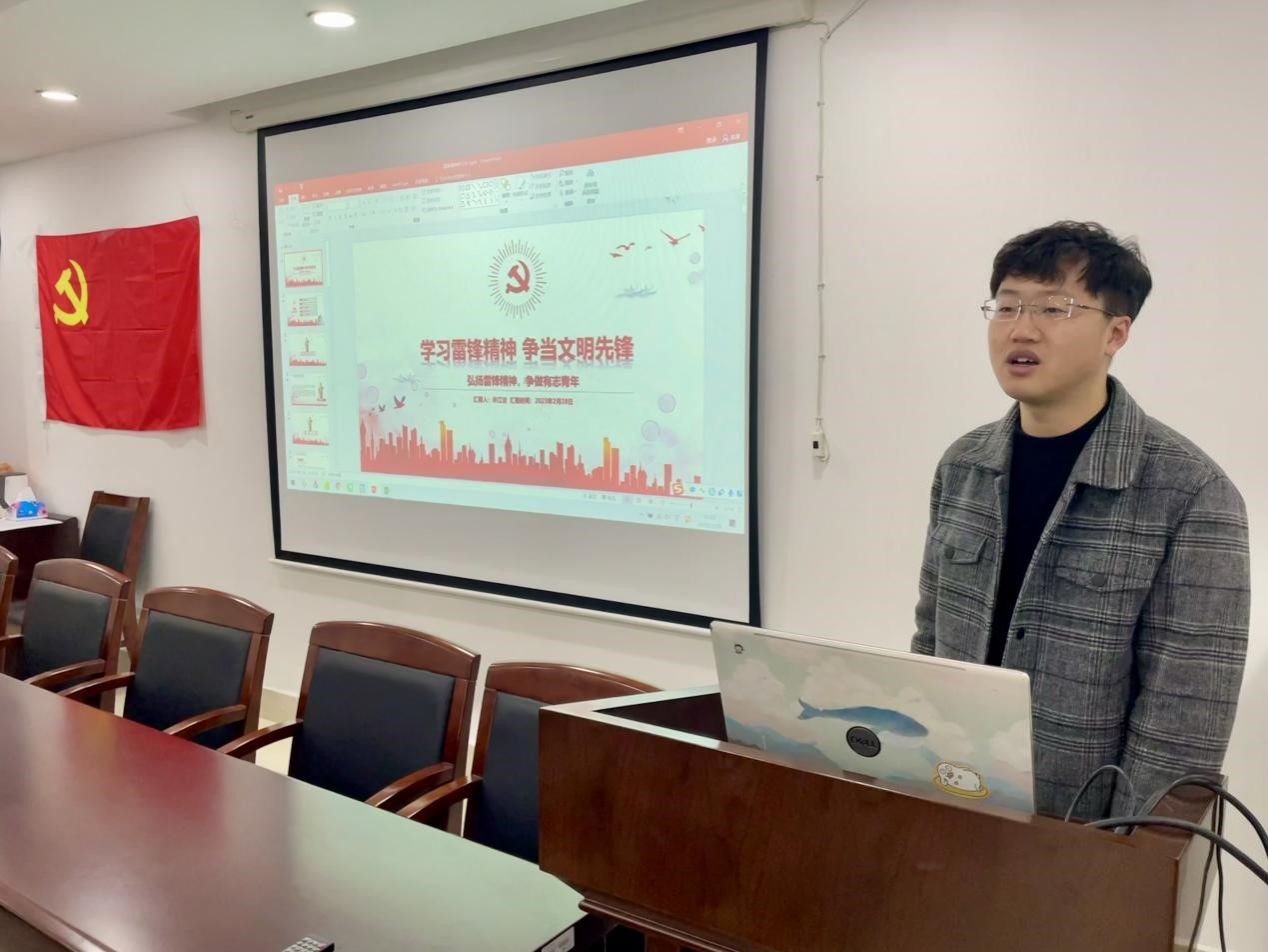 2023228日,太阳成集团tyc234cc暖通研究生党支部在天工楼302A会议室举办雷锋精神学习会暨先进志愿者颁奖仪式,暖通研究生党支部组织委员许江洁同志为支部党员上一节生动的党课。
