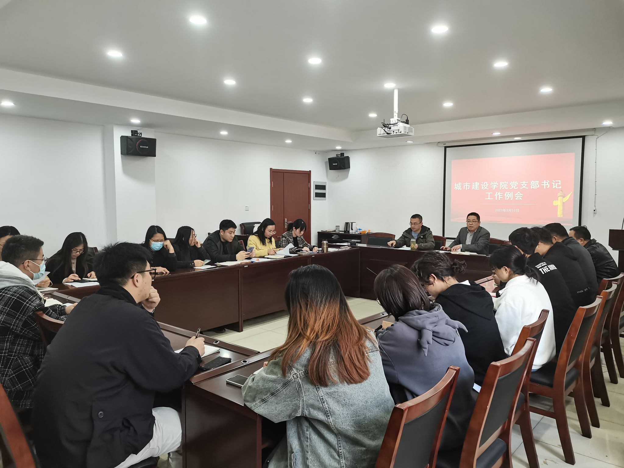 2023年3月15日下午,城建公司党委在天工楼302A会议室召开党支部书记工作例会,公司党委书记段然堂,党支部书记、委员参加会议,公司党委副书记孙家文主持。