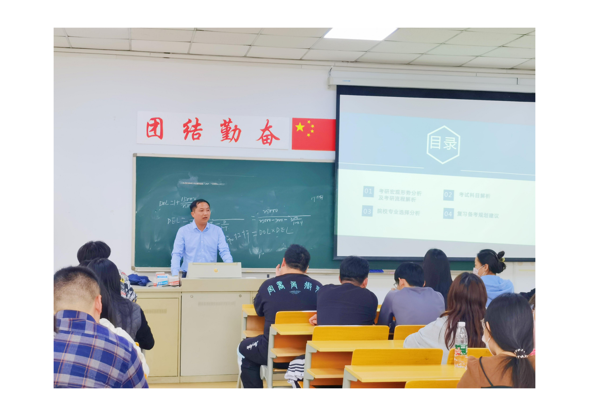 5月10日,公司在丁家桥校区东南楼319教室开展了考研辅导专题讲座。讲座由研榜考研联合创始人、信大云天教育创始人赵强老师主讲,22级自考助学专业本科同学参加了讲座。