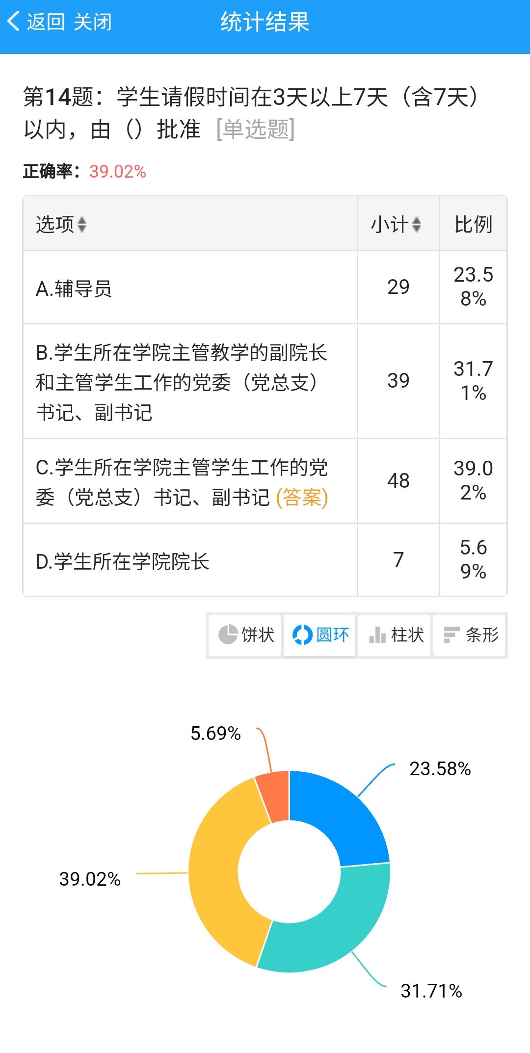 本次答卷涉及图书馆借阅流程、军训、pu系统、宿舍规定、班委评选等内容。活动通过线上答卷的形式,让员工在答题过程中发现“盲点”,查漏补缺。通过答卷数据分析得出,当前同学们对图书馆借阅规定、员工请假流程等内容还不熟悉。