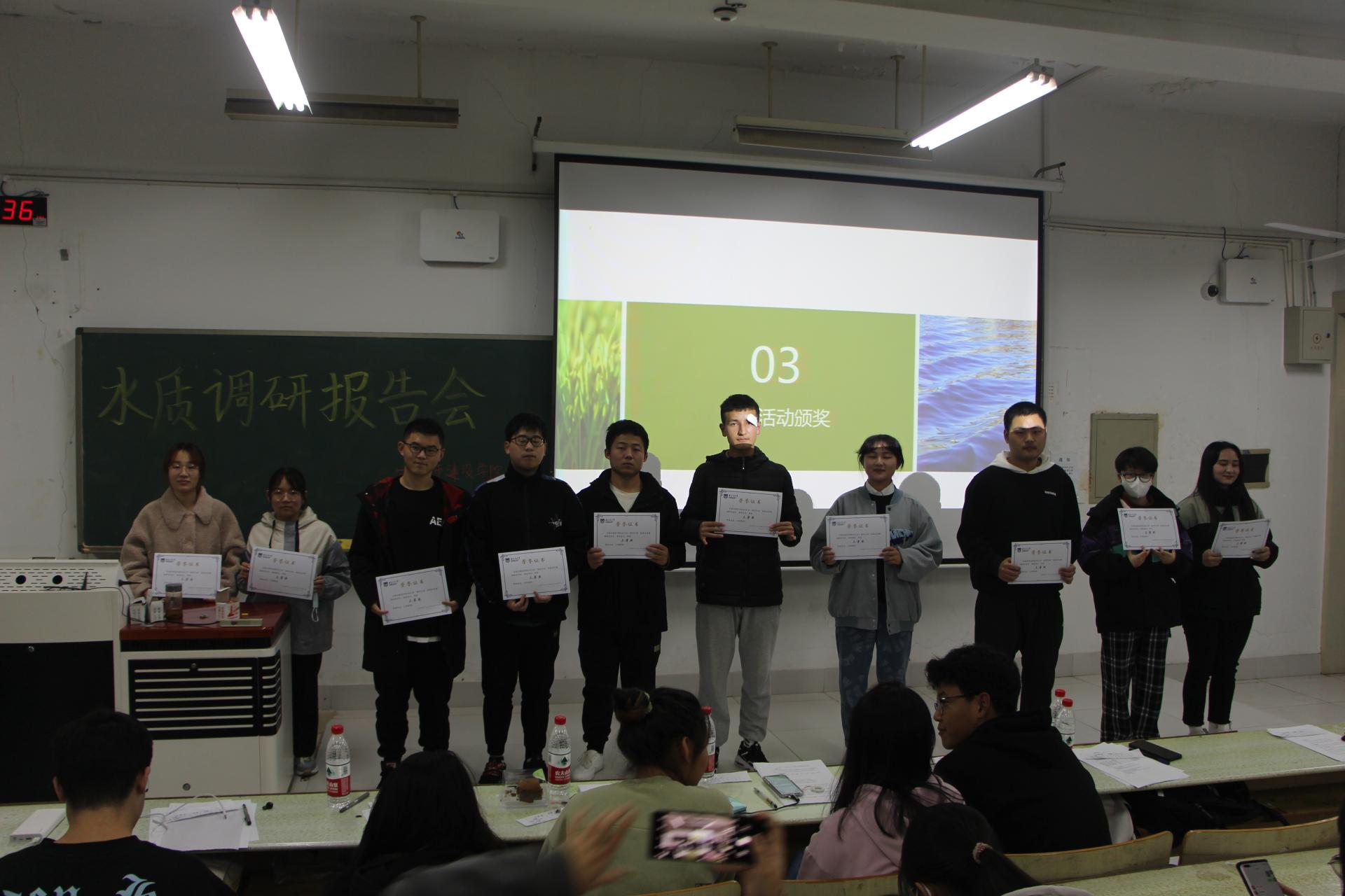 2021年11月28日晚,太阳成集团tyc234cc成功举办了“水质调研”报告会,本次活动邀请了给水2003班王琦珑、宋玉贤、缪利娜、给水2002张敏君、给水1902禚欣雅、给水1903郭秉权等同学作为评委,活动参与对象为太阳成集团tyc234cc全体21级员工。