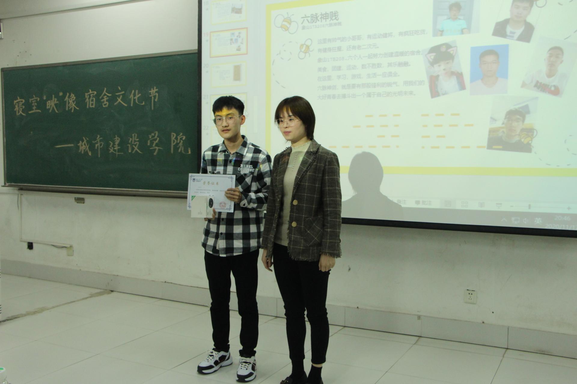活动伊始,各个参赛宿舍八仙过海,不仅展示了寝室风采,介绍了宿舍成员,还进行了才艺展示,内容丰富,妙趣横生。介绍环节结束后,每一个宿舍参加了默契挑战小游戏,引得全场欢笑不断。小游戏结束之后,由各位评委打分,工作人员统计分数,并由辅导员韩荣老师和各位部长为获奖寝室成员颁发奖状和奖品。