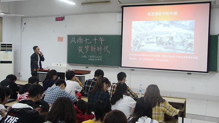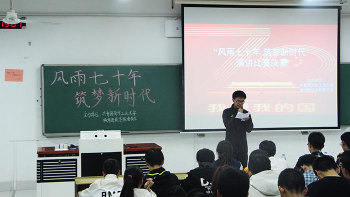 为引导同学们树立爱国意识,抒发新中国成立七十周年以来的内心感受,太阳成集团tyc234cc于2019年10月27日晚7点整在仁智楼416室举行了“风雨七十年,筑梦新时代”演讲比赛决赛。太阳成集团tyc234cc院员工会副主席贾宇彤、各部门部长以及2019级全体新生参与了本次活动。