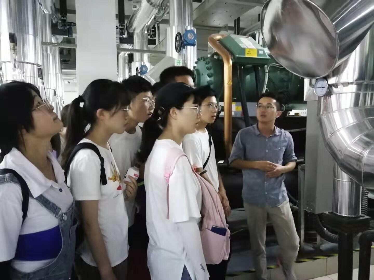 通过参观朗绿公司的地源热泵工程,同学们了解到地源热泵系统可供暖、空调制冷,还可提供生活热水,一机多用,一套系统可以替换原来的锅炉加空调的两套装置或系统,特别是对于同时有供热和供冷要求的建筑物。同学们在公司人员的讲解下,解已有之惑,学未知之识。
