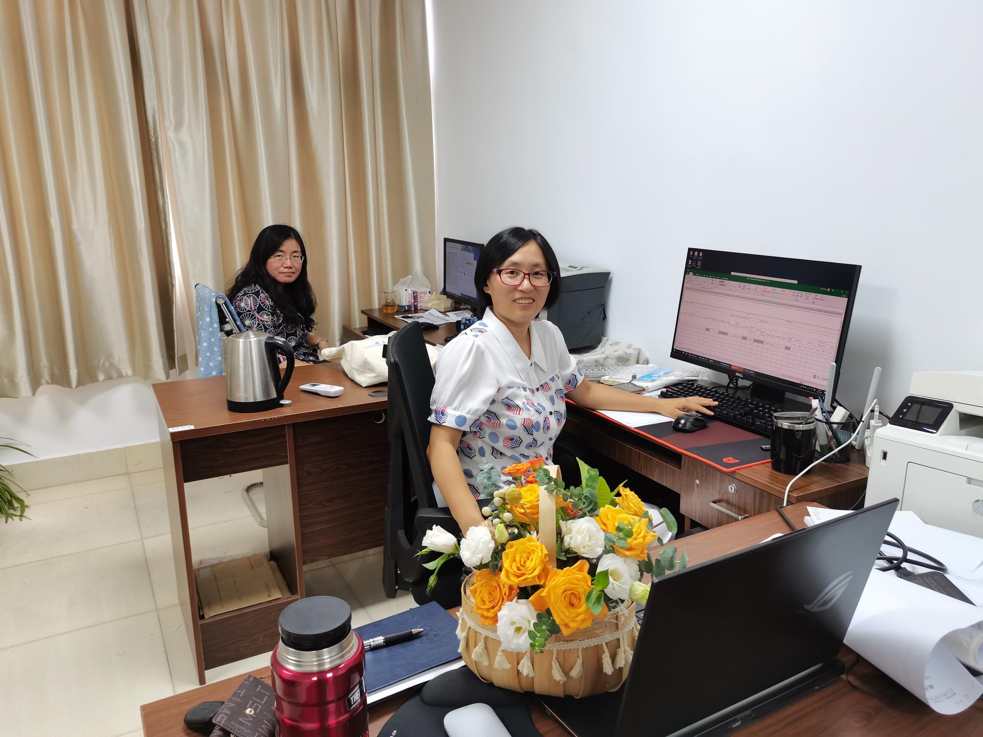 城建公司刘经理,9月10日一早前往两系教研室、两办教职工送上粉色的康乃馨,代表公司党委表达对教师节的祝福。
