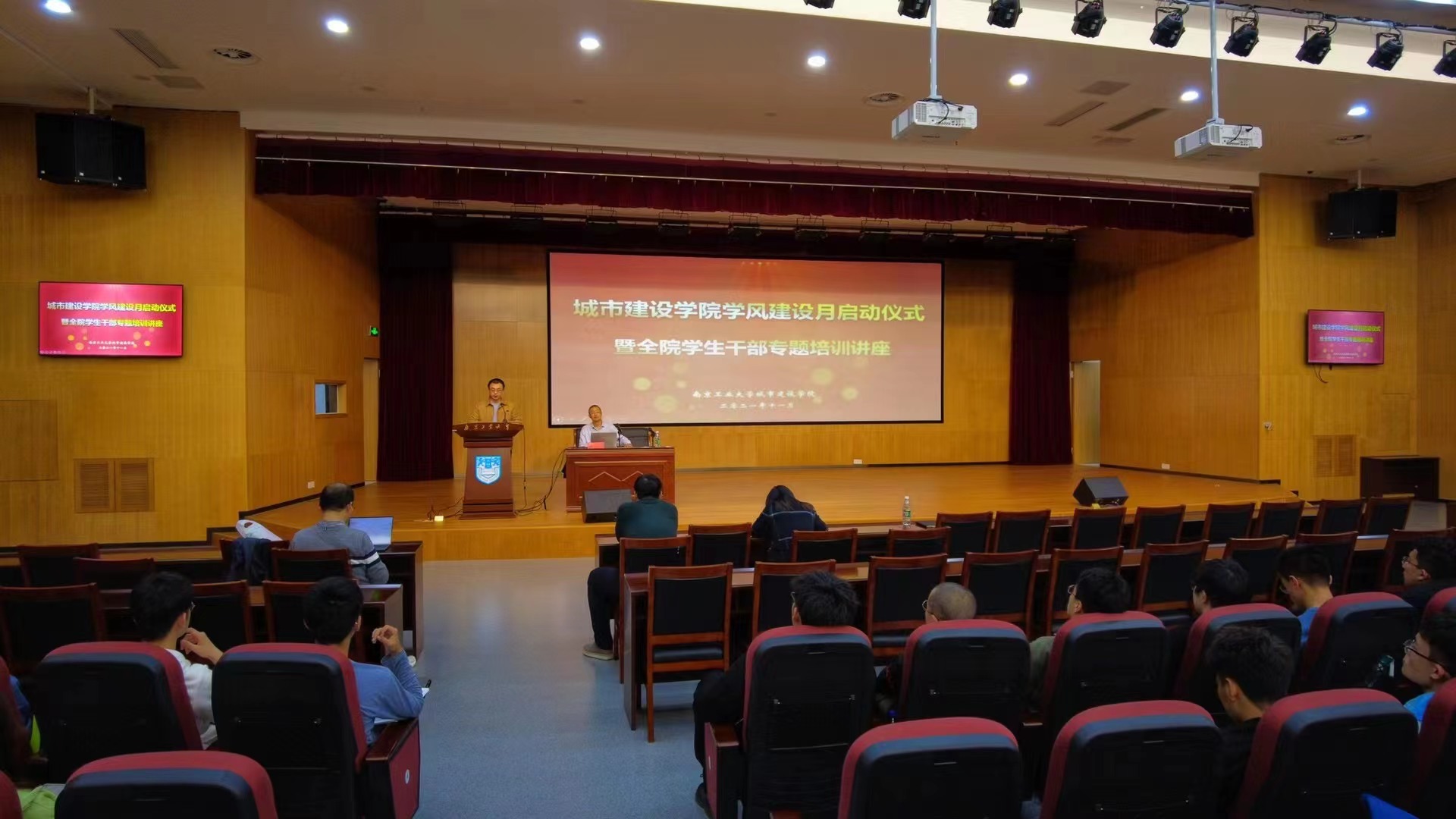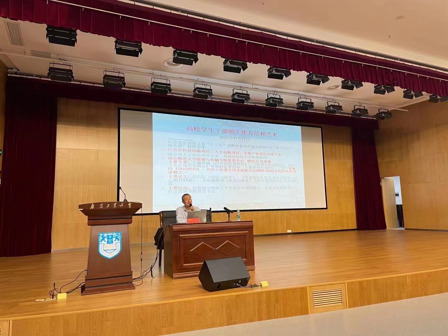 2021年11月16日晚,太阳成集团tyc234cc在笃学楼报告厅举行城建大讲堂暨学风建设月启动仪式,全体辅导员、各年级员工干部参加活动,启动仪式由党委副书记孙家文主持。本次活动特邀南京师范大学能源与机械公司党委书记、研究员张明明教授作题为《高校员工干部的工作方法和艺术》的主题讲座。