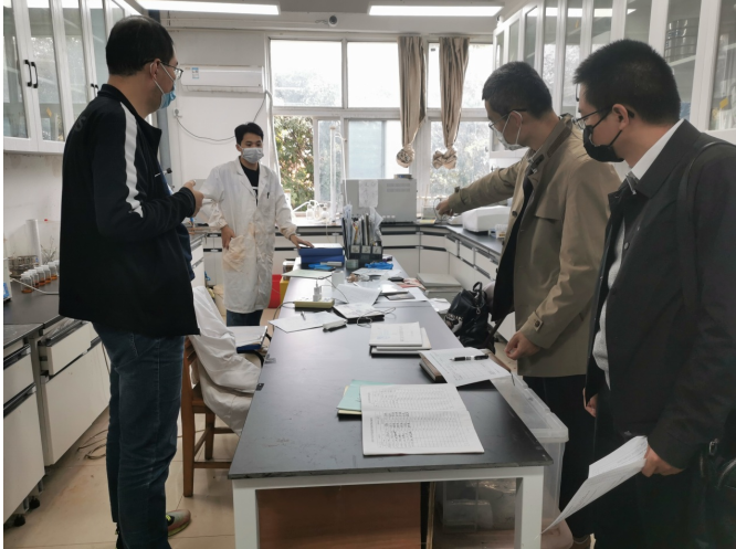检查组以实地入室走访查看的形式,先后对市政工程专业的生工楼607-1和607-2两个典型科研实验室进行突击抽查,从实验室的管理制度、危化品管理、消防安全、水电设施、通风情况等进行落实情况检查。重点检查了仪器设备的规范操作及使用记录、危险化学品的入库管理及领用登记情况、实验室危废处理等重要环节。针对存在的安全隐患进行认真排查,发现问题进行现场记录,要求实验室负责人员立即整改,同时检查组也认真听取并记录现场实验人员反馈的需求和建议,后续公司及实验中心也将为实验室安全提供必要的保障。各实验室实验人员认真听取了检查组提出的整改意见,保证整改到位。