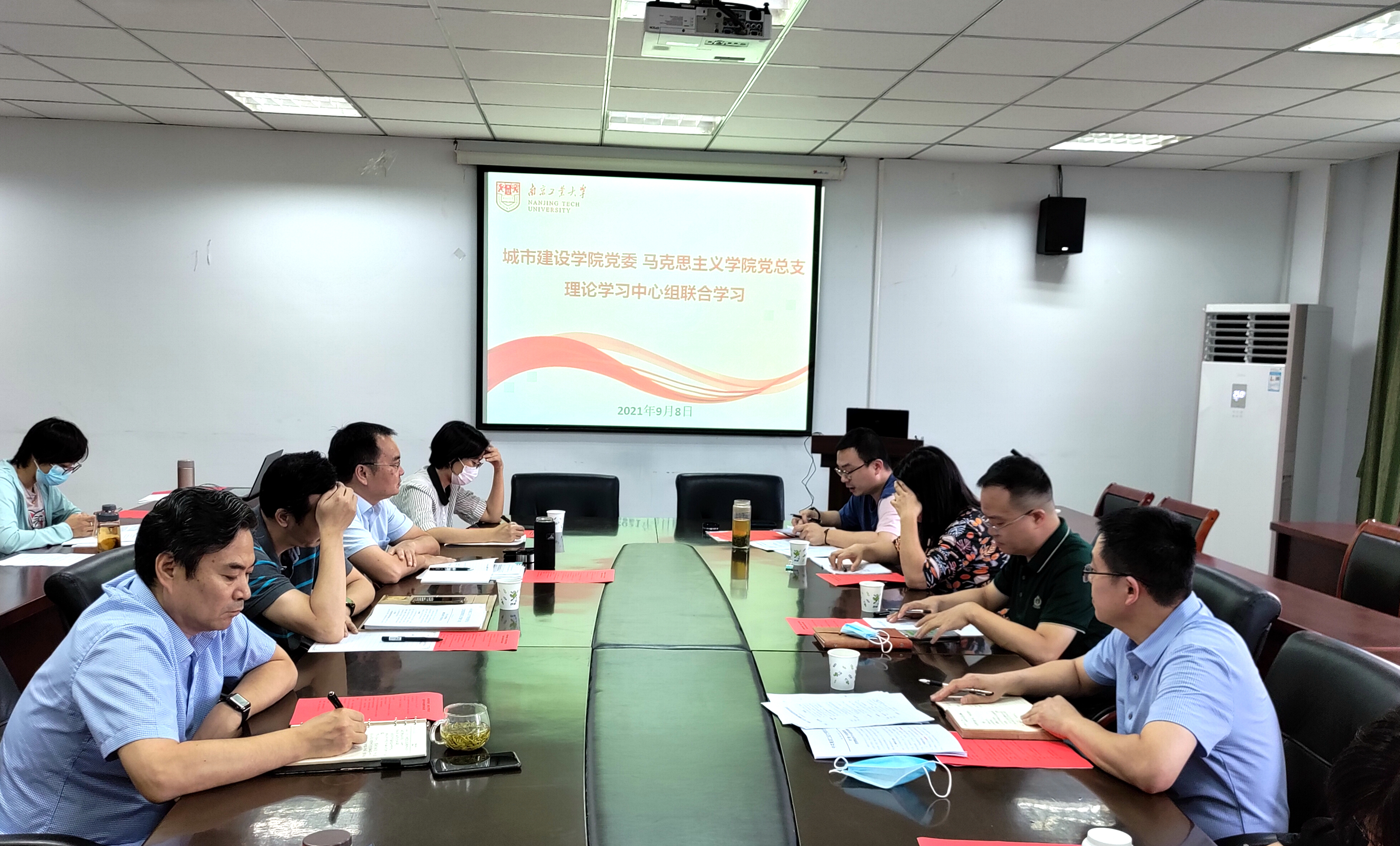 2021年9月8日下午,城市建设公司党委与马克思主义公司党总支在明德第二会议室召开理论学习中心组联合学习会。两院理论学习中心组全体成员参加,马克思主义公司党总支书记张振海主持学习会。