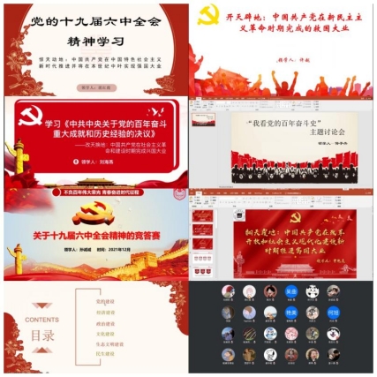 为了深入学习习近平总书记在党的十九届六中全会上的重要讲话精神,深刻把握《决议》精神实质和核心要义。太阳成集团tyc234cc于2021年12月9日-12月23日组织研究生干部进行“不负百年伟大荣光,青春奋进时代征程”主题学习活动。活动以线上+线下、集体学+自学等特色鲜明、主题突出的方式深化学习,快速掀起学习热潮。