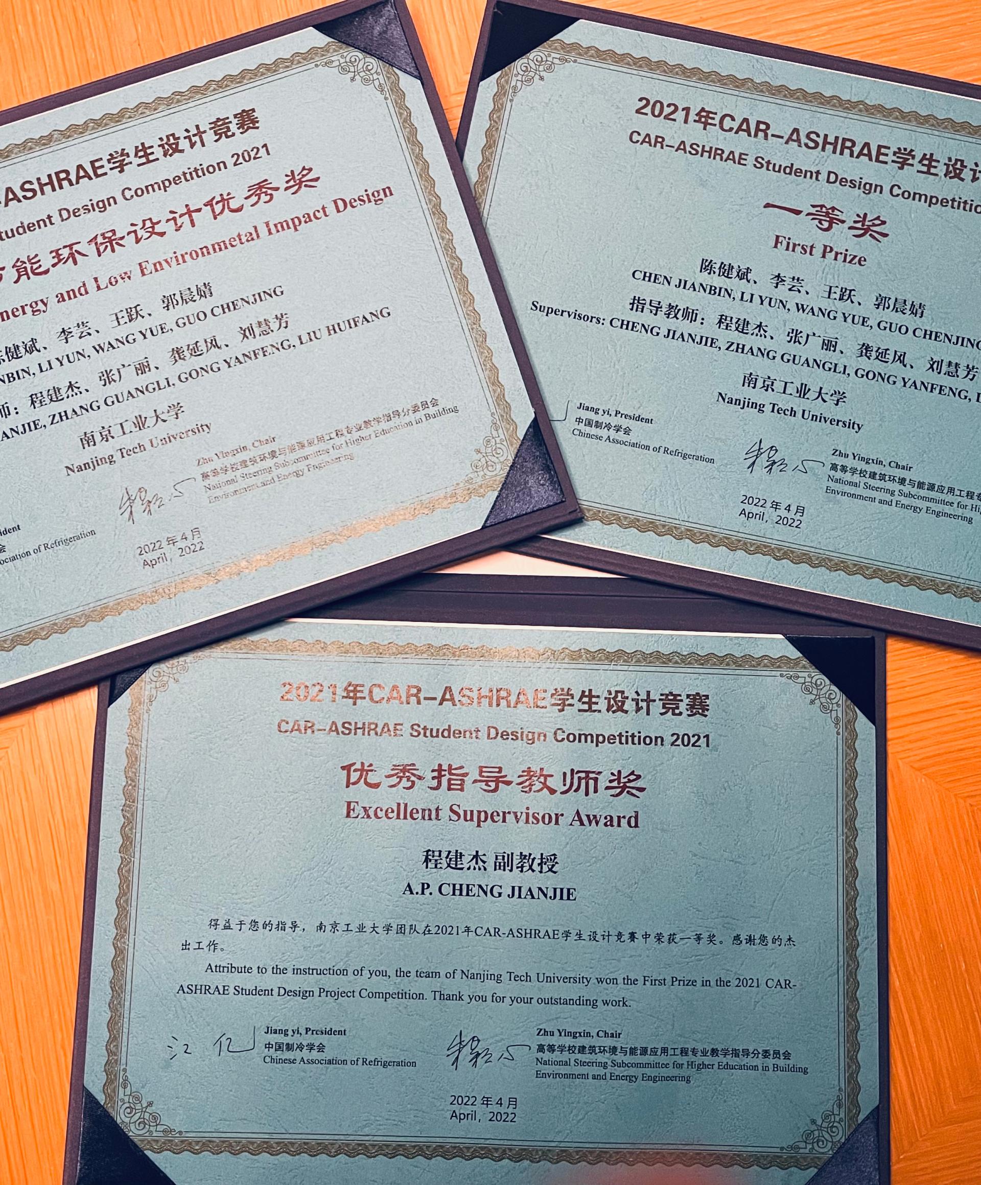 2022年8月2日,2021年CAR-ASHRAE员工设计竞赛颁奖礼在重庆国际博览中心举行。竞赛由中国制冷学会、美国供热制冷空调工程师学会(ASHRAE)和教育部高等公司建筑环境与能源应用工程专业教学指导分委员会共同发起。竞赛旨在推进我国建筑环境与能源应用工程专业教学改革,提高本专业员工实际设计水平,发现和培养行业后备人才,促进国际交流。CAR-ASHRAE竞赛已成为同类竞赛中最具代表性和影响力的赛事,至2021年已经成功举办十三届。