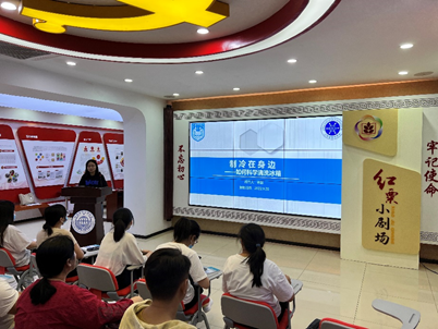 在海陵区莲花社区党群服务中心,王瑜副教授做了主题为“碳排放与节能减排”的科普讲座,号召大家低碳出行,从自身做起,响应习近平总书记“碳达峰”和“碳中和”的庄严承诺。许越同学从细微处出发,详细介绍了冰箱的清洁流程和步骤,强调了清洁冰箱不仅有助于人体健康,也有助于节约冰箱用电。王老师和许同学介绍过程中,现场观众频频拍照,对团队的科普内容表示认可。科普活动完成后,王老师和许同学向现场观众发放了中国制冷学会编制的《制冷在你身边》科普资料。观众们纷纷表示资料内容实用和通俗易懂,并将回家按资料要求清洗冰箱空调。
