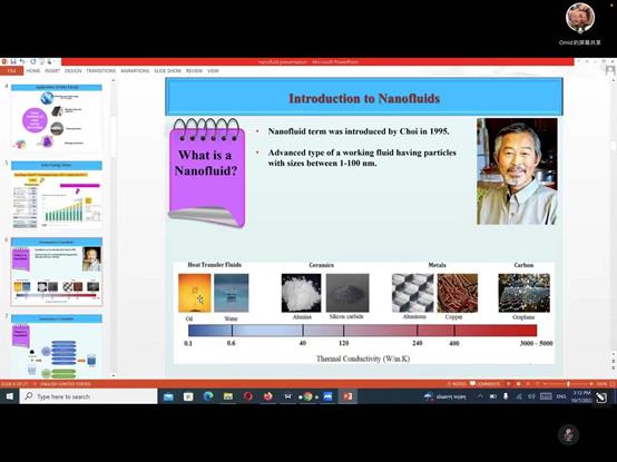 Omid教授首先从自己的研究领域出发,向研究生介绍了纳米流体的概念,着重讲解了纳米流体在太阳能集热器中的应用;同时也分析了纳米流体存在的不足和改进方向。