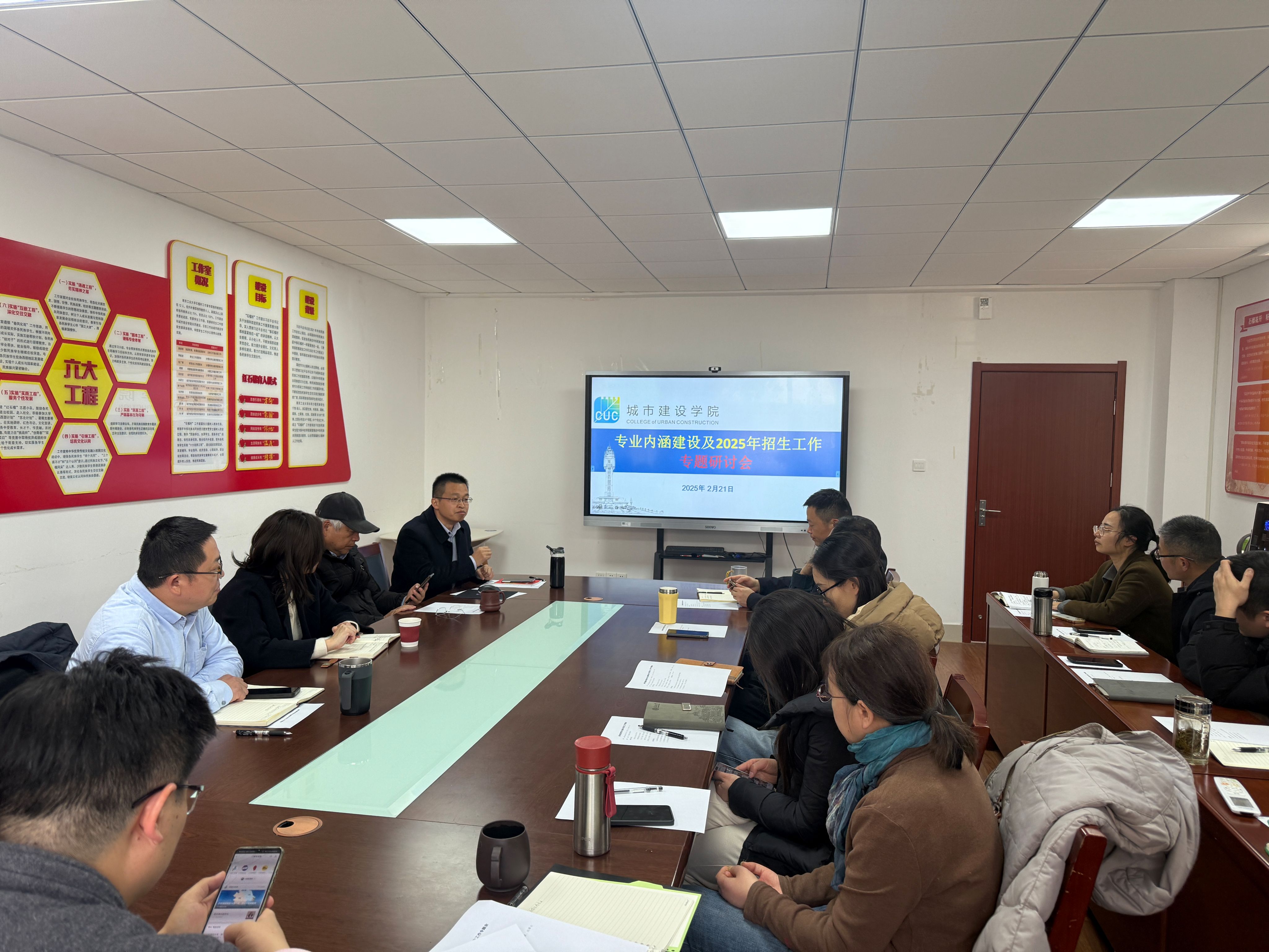 会上,严老师围绕2024年公司招生情况、专业设置以及2025年招生政策调整等关键信息进行了全面系统的介绍,分析了当下招生工作面临的新形势新动态。颜经理分别从专业认证、一流专业、教学能力、人才培养等方面介绍公司近期专业内涵建设举措,并结合国家“双碳”战略需求及建筑业数字化转型加速的时代背景初步探讨了专业改革的相关内容。与会人员就招生策略优化调整方案进行了积极的交流互动。
