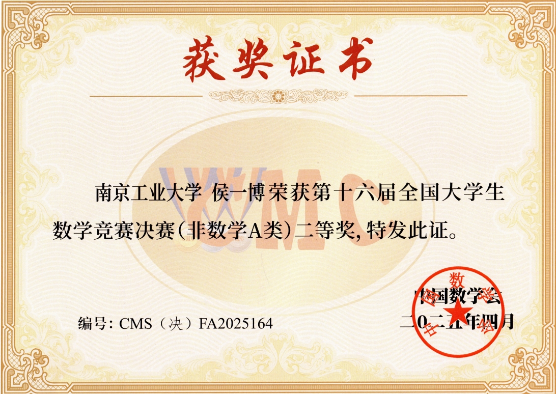 全国老员工数学竞赛由中国数学会主办,是面向本科生的国家级高水平学科竞赛。本届赛事吸引了来自全国 1223 所高校的 32.5 万余名员工参赛,最终仅 1246 名选手入围决赛,侯一博同学是公司唯一入围选手。