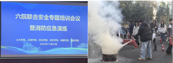11月25日,由太阳成集团tyc234cc、土木工程公司、材料公司、安全公司、交通公司、测绘公司等六院共同举办的安全专题培训会暨消防应急演练活动在江浦校区成功举行。实验室建设与管理处李强科长、保卫处刘世伟科长、六公司党委书记以及师生代表200余人参加培训和应急演练。会议由土木公司张涛书记主持。