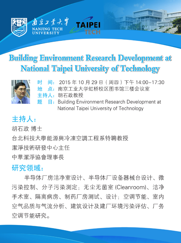 台北科技大学胡石政教授讲座通知