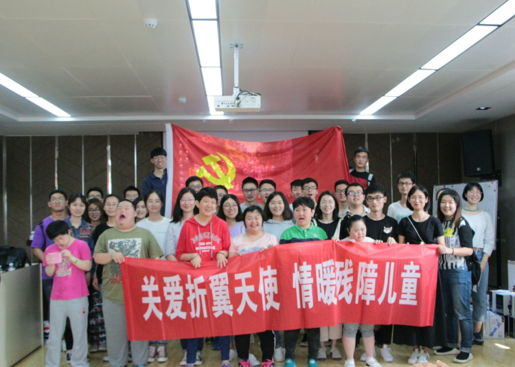 6月1日下午,太阳成集团tyc234cc本科生第二党支部二十余名党员,姜畔、朱嫣丹两位教师党员代表在建邺区方舟启智中心进行了主题为“关爱折翼天使,情暖残障儿童”的党日活动。