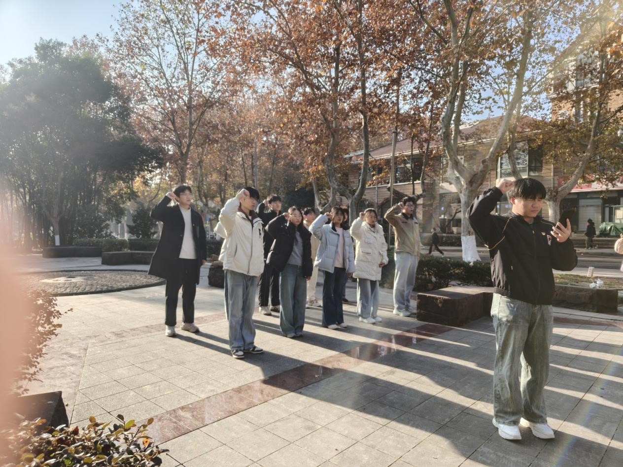 《国际歌》旋律缓缓奏响,本次入党宣誓仪式正式拉开帷幕。旋律回荡在时钧园的每一个角落,也深深镌刻在每一位新党员的心中。在领誓人魏巍的带领下,全体预备党员整齐列队,昂首挺胸,右手高高握拳、郑重高举过肩,目光灼灼地凝视着前方鲜红的党旗,铿锵有力地庄严宣誓。激昂的誓词响彻云霄,展现新时代青年党员对党忠诚、为共产主义事业奋斗终身的赤诚之心与坚定担当。